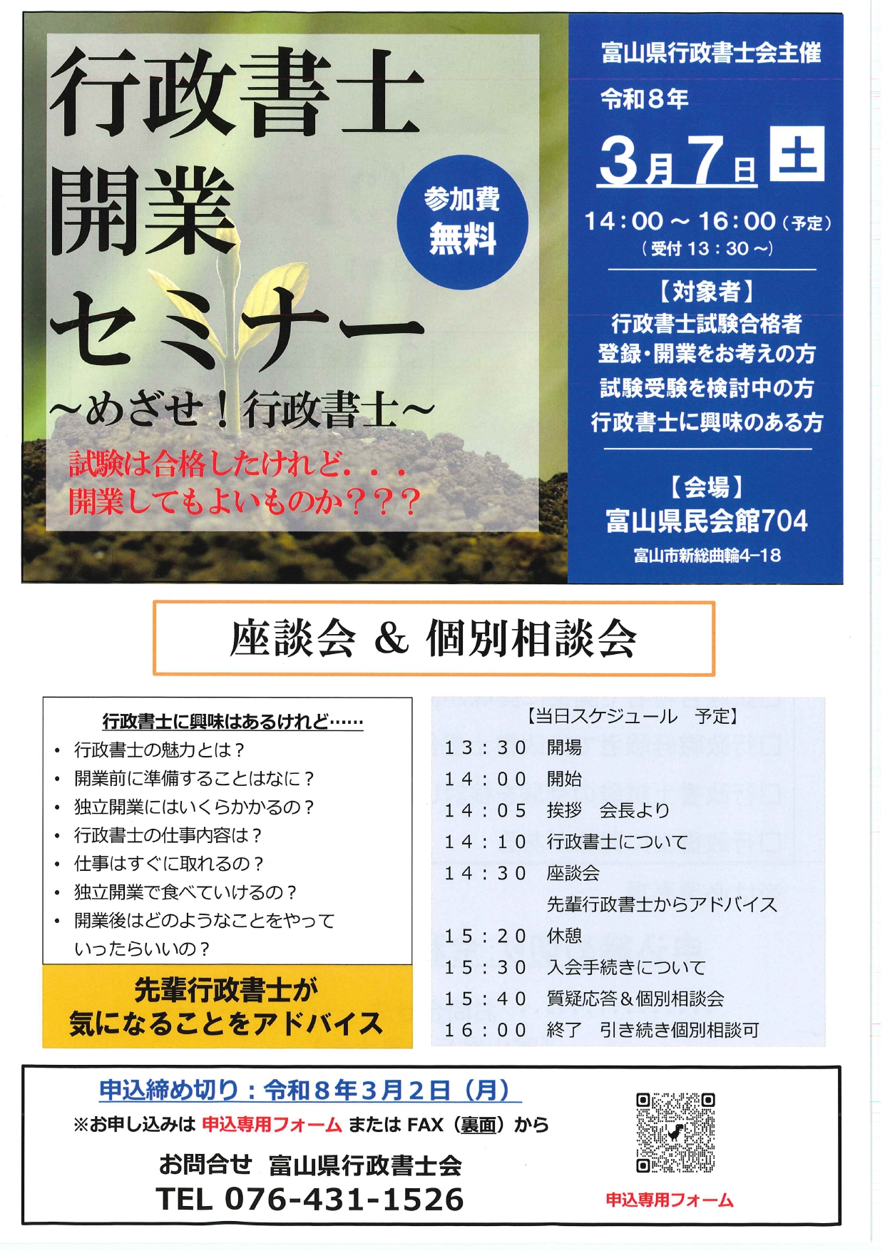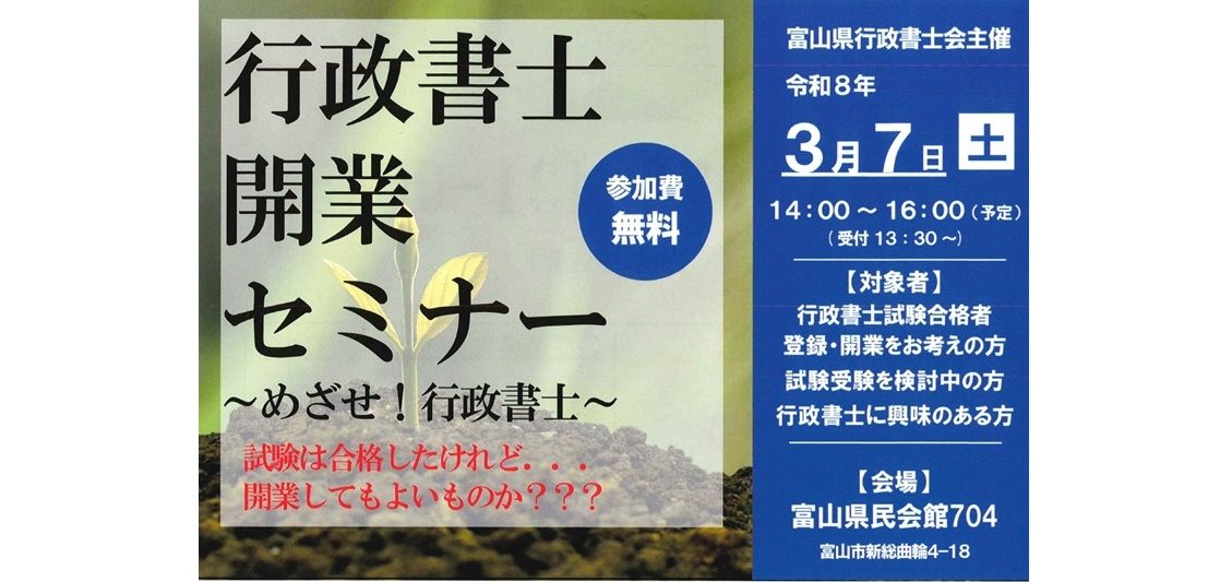 令和8年3月7日に行政書士開業セミナーを開催します。